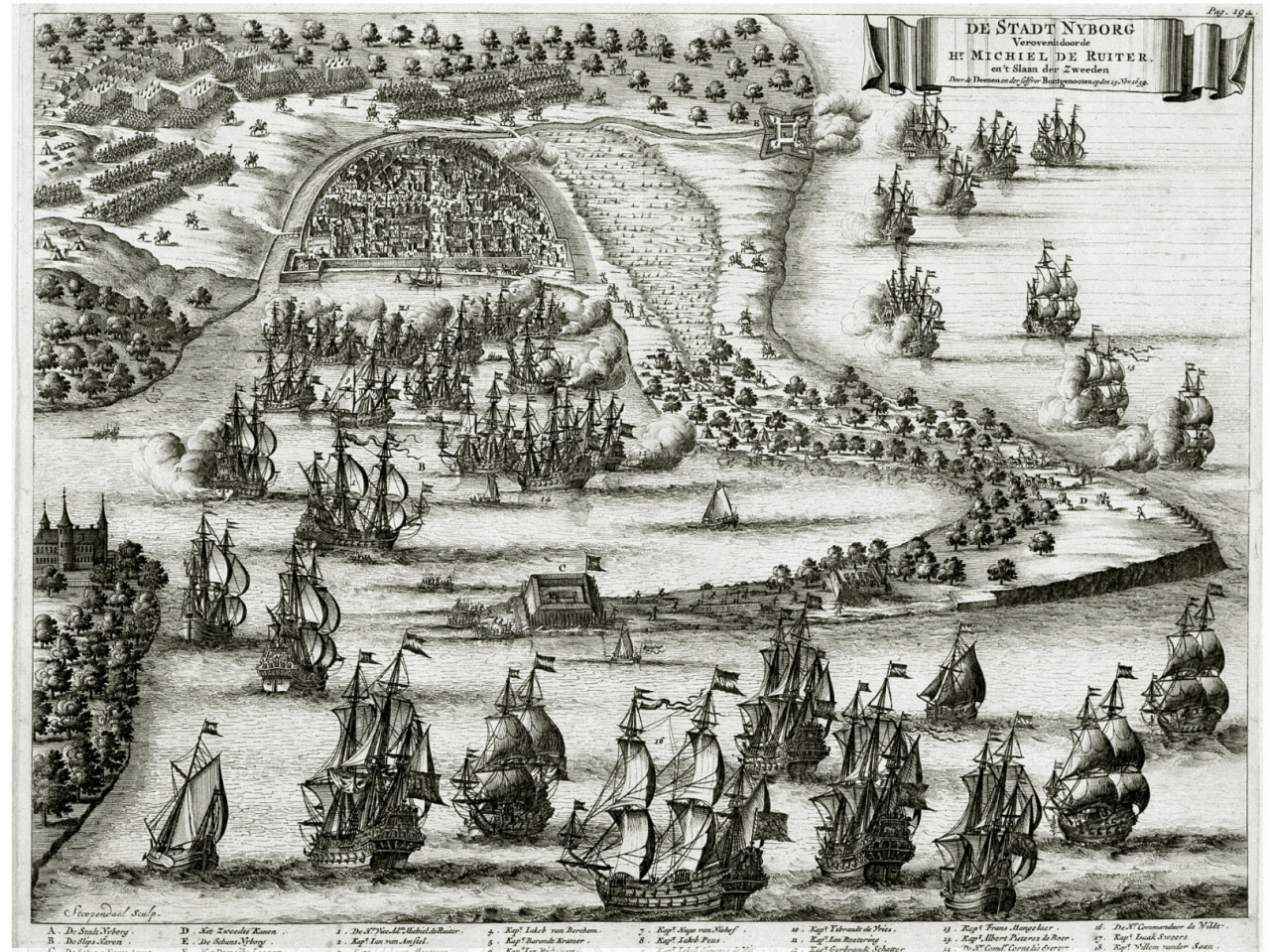 Toen ze dertien jaar oud was, vocht Willemtje Gerrits mee in de Slag bij Nyborg (ook wel Slag bij Funen genoemd) op 14 november 1659. Een eskader (oorlogsvloot) onder leiding van Michiel de Ruyter vocht mee in de Sont, om Denemarken te ondersteunen in hun gevecht tegen de Zweden. Gravure van Bastiaan Stoopendael, 1660-1690.